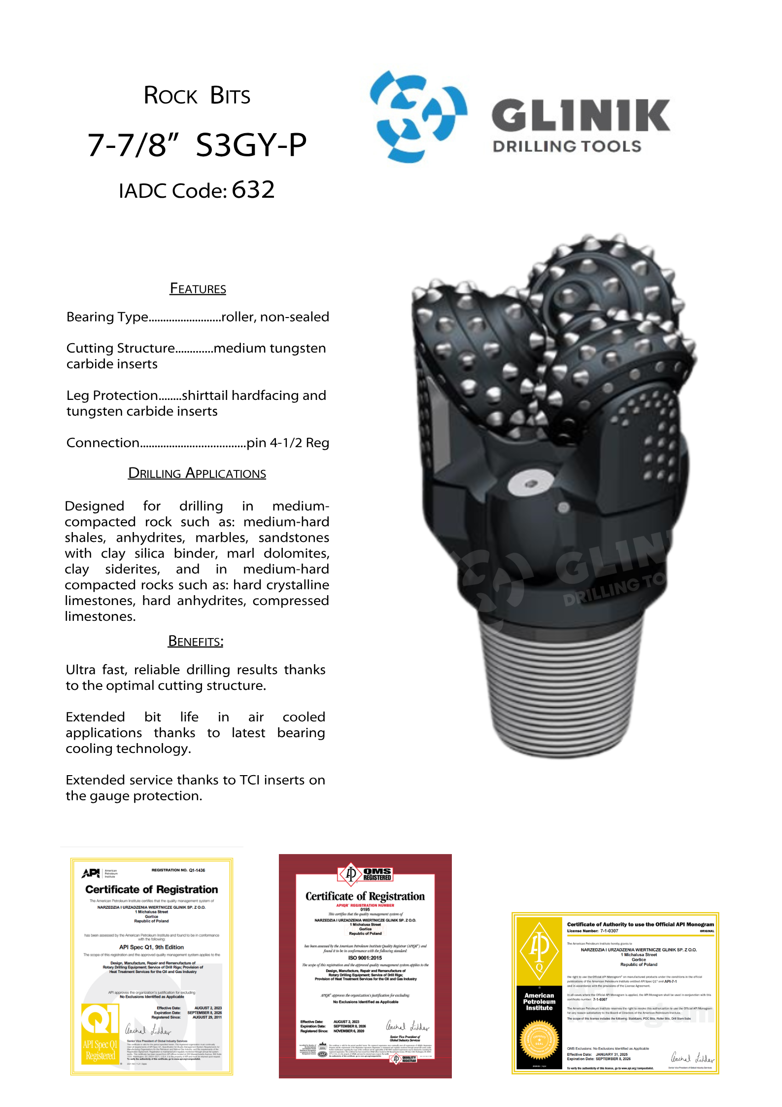 Diseñada para perforar en rocas moderadamente compactadas como: esquistos moderadamente duros, anhidritas, mármoles, areniscas con ligantes arcillo-silíceos, dolomías margosas, sideritas arcillosas, y en rocas moderadamente compactadas como: calizas cristalinas duras, anhidritas duras, calizas comprimidas.