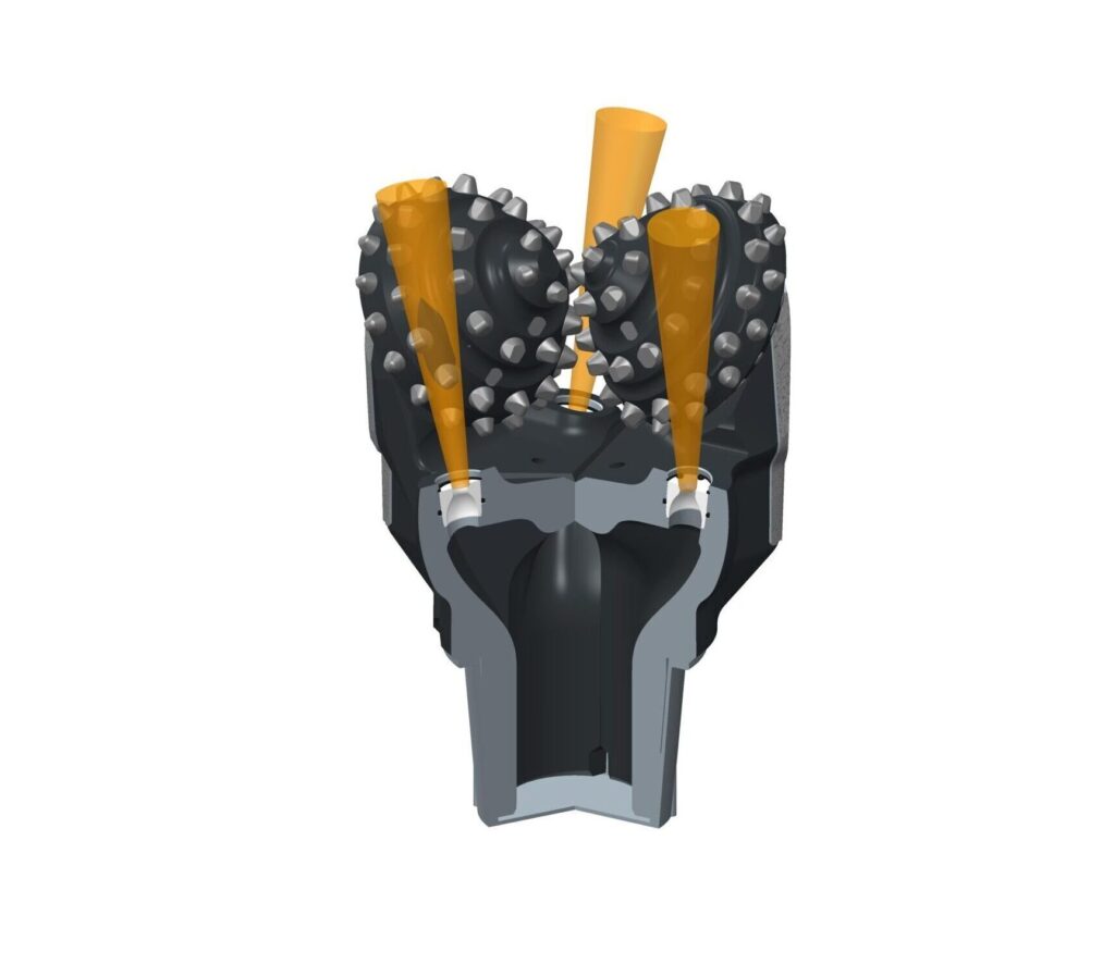 La disposition des buses et l’orientation de la sortie de la buse permettent un nettoyage efficace du fond du trou et de la structure de coupe de l’outil. Cette solution a été conçue pour une efficacité de forage maximale.