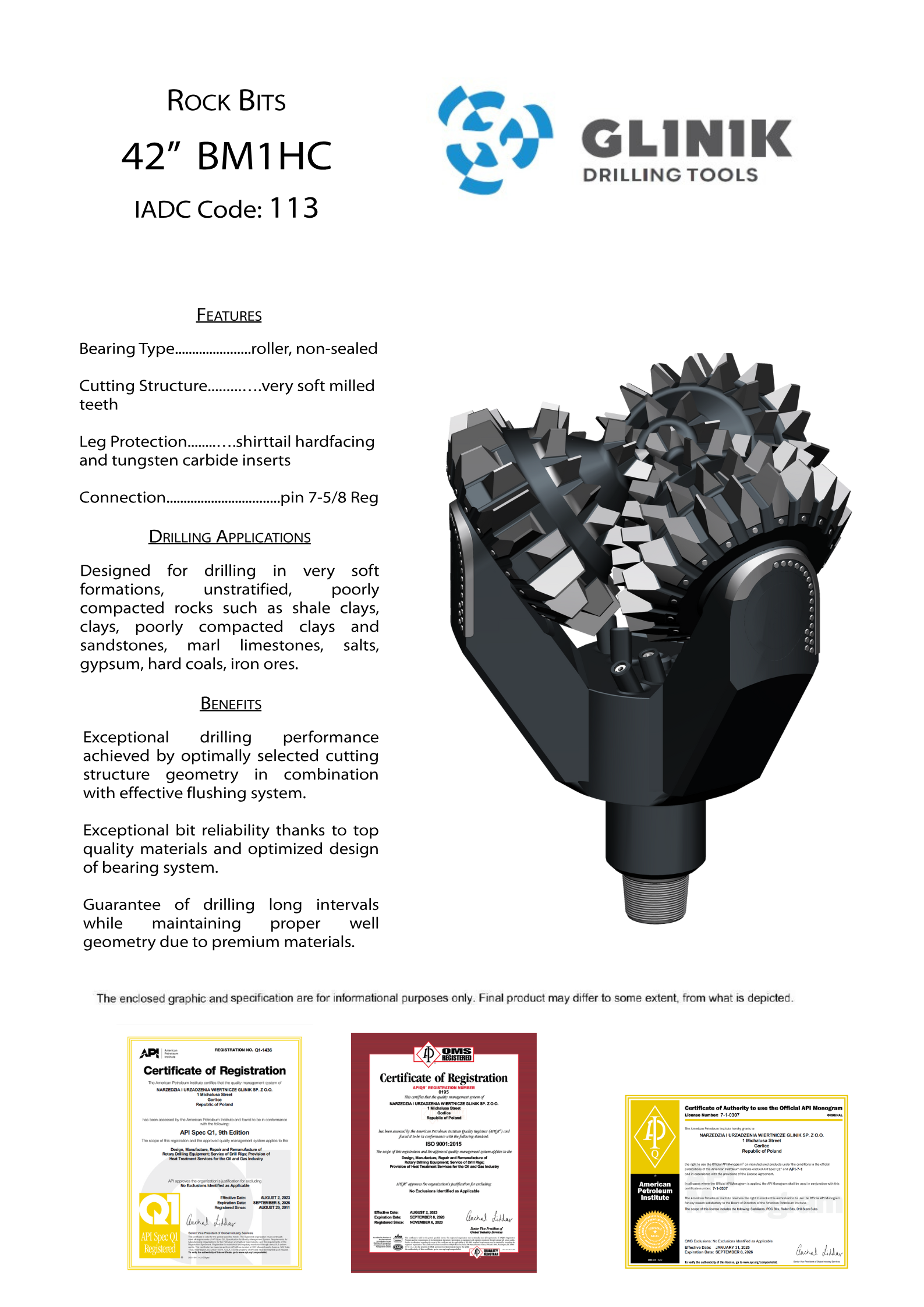 Świdry trójgryzowe, których struktura tnąca opiera się na wysokiej jakości frezowanych zębach stalowych pokrytych napoiną wykonaną z materiałów trudnościeralnych, dostosowanych do przewiercanych formacji we wszystkich aplikacjach wiertniczych. W naszych rozwiązaniach wykorzystujemy łożyska uszczelnione i nieuszczelnione w zależności od preferencji Klienta. Wysoki postęp wiercenia jest zapewniony dzięki zastosowaniu efektywnego płukania struktury tnącej i dna otworu. Zakres średnic obejmuje od 2-3/8”(60,5mm) do 42” (1066.8mm).