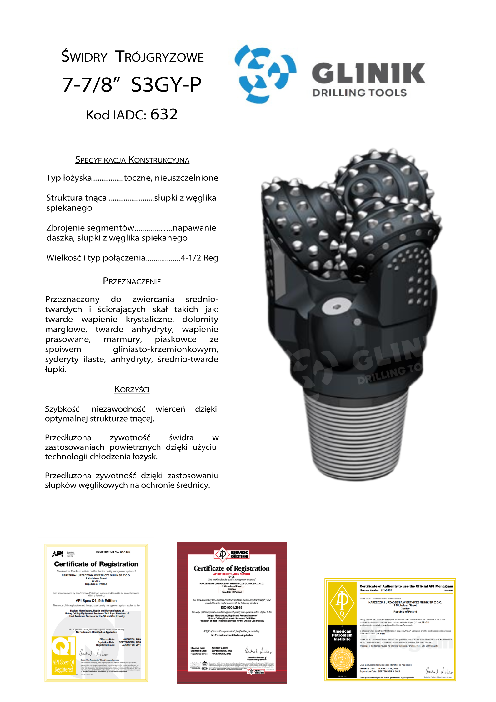 Świdry trójgryzowe, których struktura tnąca opiera się na wysokiej jakości słupkach węglikowych dostosowanych do przewiercanych formacji we wszystkich aplikacjach wiertniczych. W naszych rozwiązaniach wykorzystujemy łożyska uszczelnione i nieuszczelnione w zależności od preferencji Klienta. By zwiększyć ochronę średnicy używamy najwyższej jakości słupków z węglika spiekanego i trudnościeralnej napoiny. Wysoki postęp wiercenia jest zapewniony dzięki zastosowaniu efektywnego płukania struktury tnącej i dna otworu. Zakres średnic obejmuje od 2-3/8″ (60,3mm) do 28″ (711,2mm).